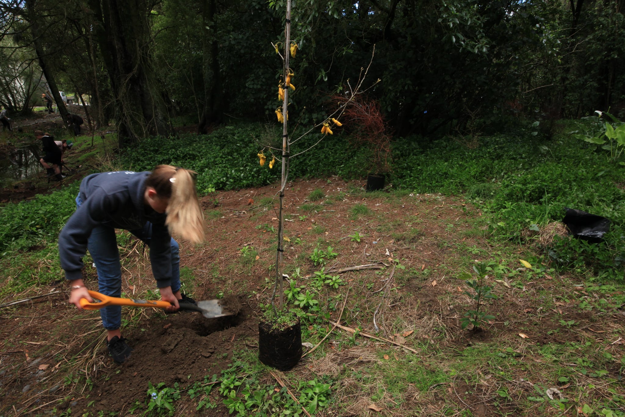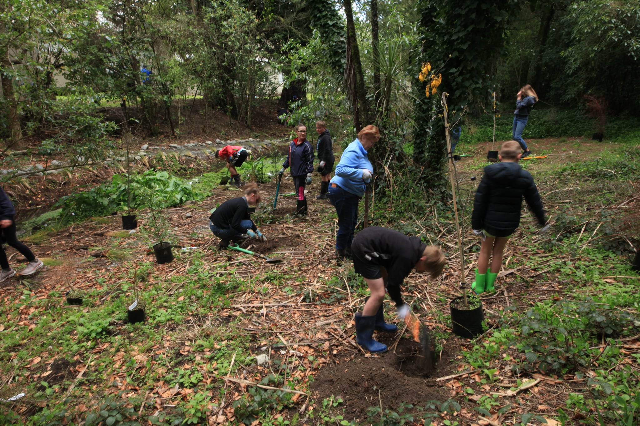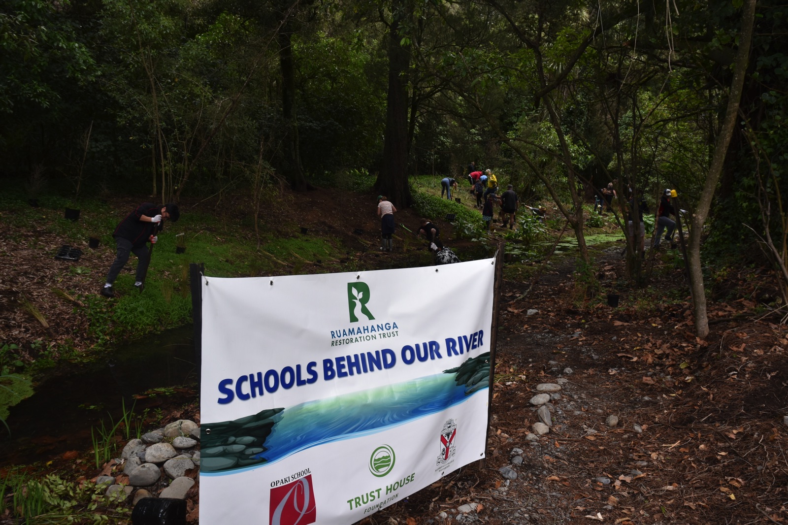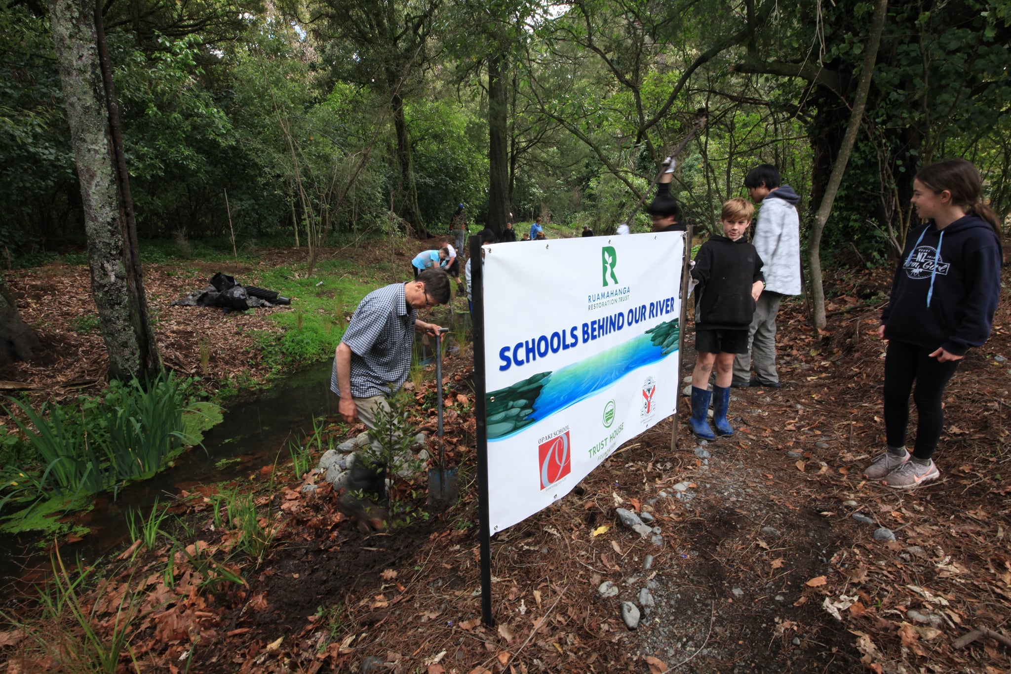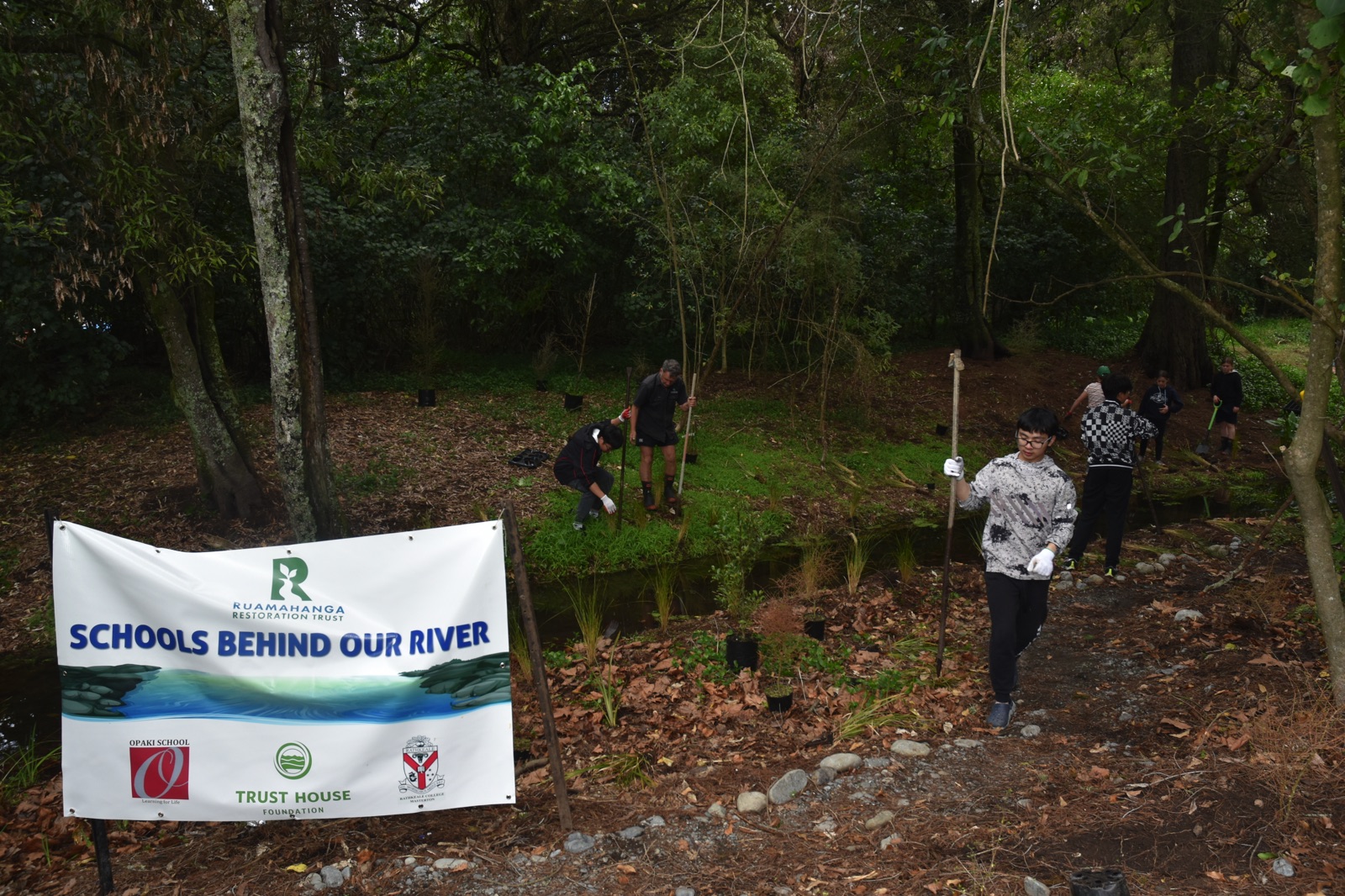 Students and a number of teaching staff from Opaki and Rathkeale volunteered to help plant over 500 native seedlings around a stream adjacent to the Rathkeale Eco Trail behind the Ruamahanga River. Special thanks to both schools and for the support of Masterton Trust House for contributing towards the cost of the seedlings, and Trevor Thompson for his conservation expertise and guidance.